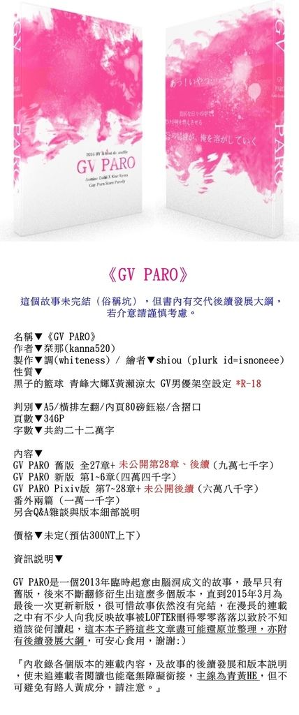 《GV PARO》青黃小說本 實體書 刊物資訊